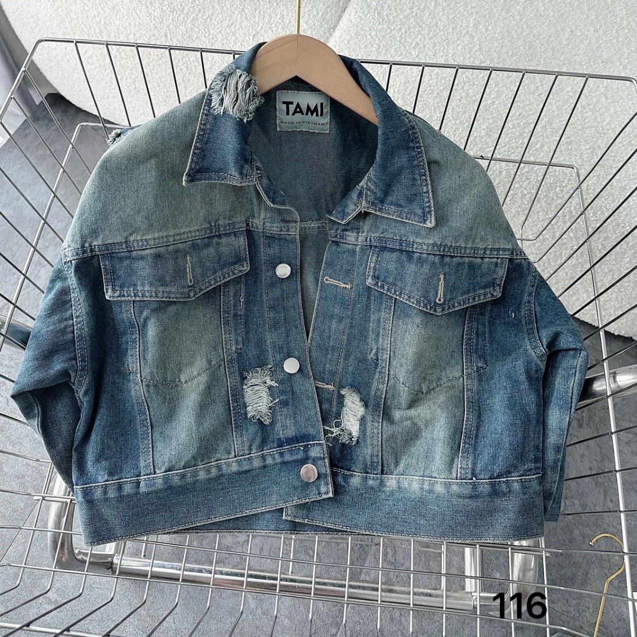 Áo khoác jean rách form croptop kiểu bigsize AJ116(50-70kg)